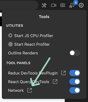 The built-in tools for Network Inspector, Redux, Outline Renders (via react-scan) and React Query are integrated with the IDE and don't require any additional configuration.