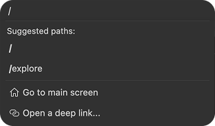 /route, - Open a deep link... - allows to provide deep links and website URLs to the device. Website URLs will open in the default device browser.